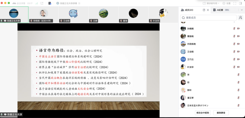 陈靓教授担任主讲与指导专家,学院本年度拟申报国社科项目的8位教师及院内其他教师共20余人参会。