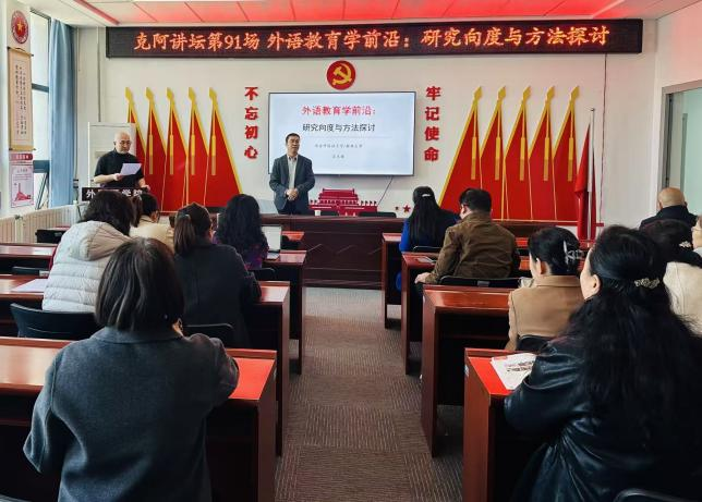 成功举办了克阿讲坛第91场学术讲座,特邀西安外国语大学吕生禄教授担任主讲,讲座由常琅教授主持,学院外语教育科研团队及硕士生导师共30余人参加。