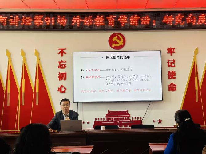 吕生禄教授围绕外语教育学的身份归属、前沿选题的来源与方法以及外语教师测评素养三个核心维度展开系统讲解。关于身份归属,他从“学科、领域、方向”三个层面厘清了外语教育学的定位,深入分析了研究方向与维度;关于前沿选题,他提出了通过系统文献阅读捕捉研究空白、利用高频关键词追踪学术热点、运用选题对比法寻找创新突破口的实用路径;关于外语教师测评素养,他从国家政策要求出发,分析了多元评价体系的改革趋势,重点阐释了“教、学、评”三元融合的理念与实践路径。